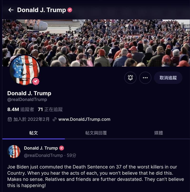 美國總統拜登在卸任前夕,於美東時間 23日上午宣布特赦37名聯邦死囚,將他們從死刑改為終身監禁;拜登與候任總統川普對於聯邦政府是否應保持死刑意見相左,拜登稱不能讓新政府執行他任內暫停的聯邦死刑。對於拜登的特赦舉動,川普 24日回應「不可理喻」(makes no sense)。