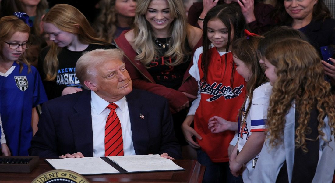 川普表示,這項行政命令將有效終結所有在公立中小學、大學等對女性運動選手的欺侮。