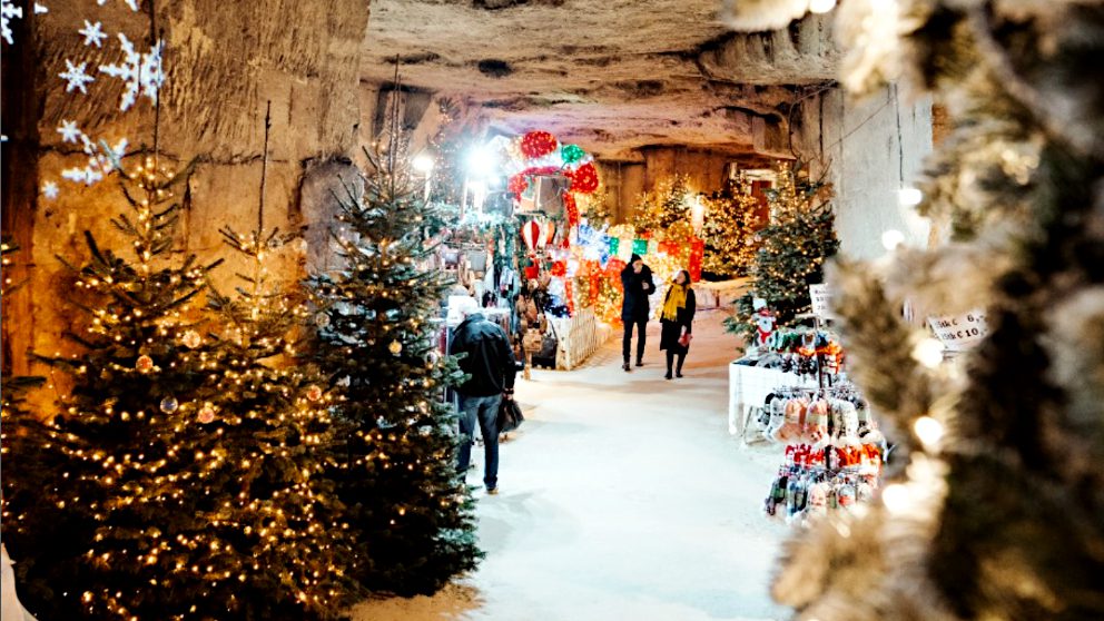在荷蘭南部的小城瓦爾肯堡,聖誕市集的主舞台不是在廣場,而是在地下。這座由石灰岩構成的洞穴,原本是古老的採石場,如今卻成了歐洲最具特色的“岩洞聖誕市集”。